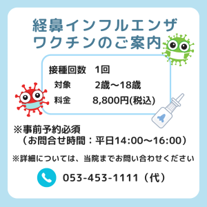 経鼻インフルエンザワクチン(フルミスト点鼻液)接種開始